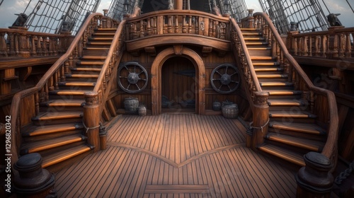 © Professional Agency, Fototapeta premium Wooden stairs leading to the captain's cabin on an old pirate ship