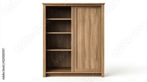 © Kullanat, Obraz premium Wooden Storage Cabinet with Open Shelves and Door