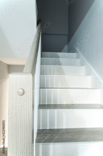 © amdre100, Obraz premium Wooden stylish staircase in the house. Interior.