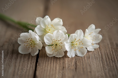 Fototapeta premium Wooden Surface Decorated With White Blossoms