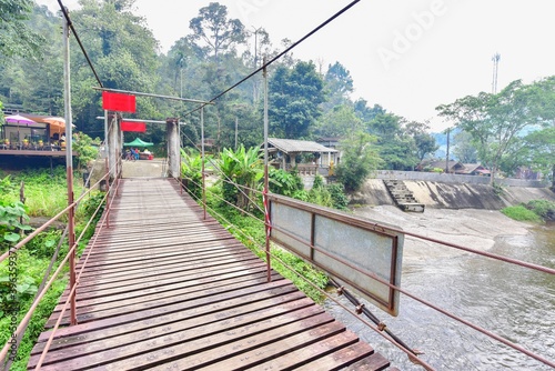 Fototapeta premium Wooden Suspension Bridge at Kiriwong Village