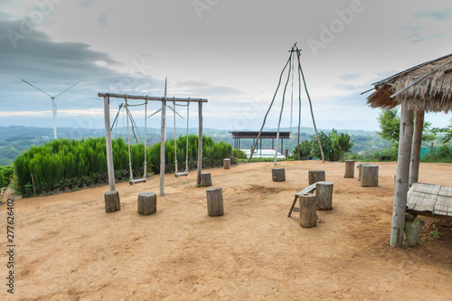 Fototapeta premium Wooden swings, sky background images