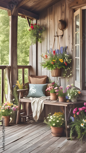 © WANNAPA, Naklejka premium wooden table and chairs in garden