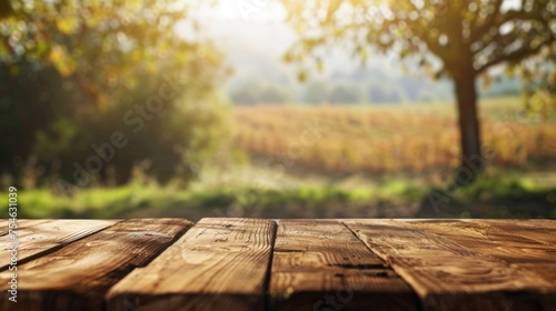 Fototapeta premium Wooden table top with copy space. Farm background