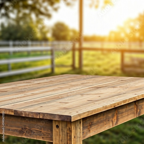 Fototapeta premium Wooden table with a farm background