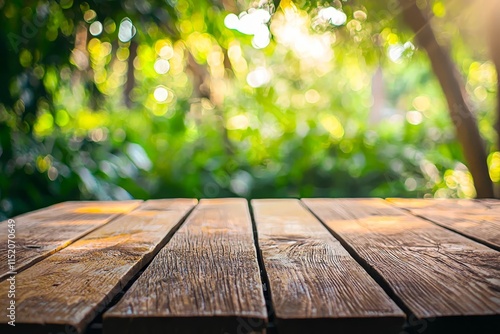 © Hunman, Fototapeta premium Wooden table with empty background for product display.