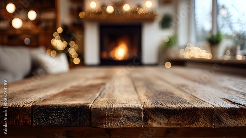Fototapeta premium wooden table with fireplace