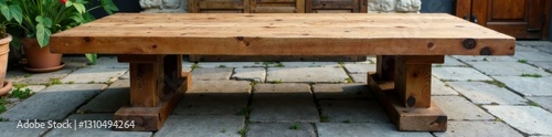 Fototapeta premium Wooden table with rustic design features, set on a natural stone floor, room,...