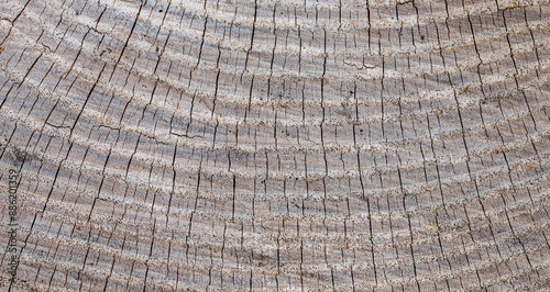 Fototapeta premium Wooden texture with natural patterns as a background. Cross-section of a tree