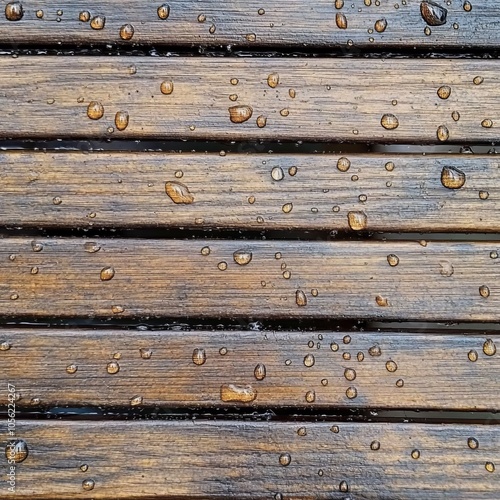 © Togrul, Fototapeta premium Wooden texture with water drops.