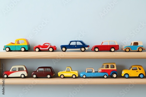 Naklejka premium Wooden Toy Cars Display on Shelves