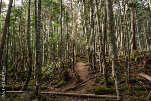 © Chasou_pics, Obraz premium 八ケ岳の森。wooden trail to the deep forest in Japan