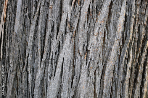 © Domingo, Fototapeta premium Wooden tree bark texture background - grooves and deep lines closeup