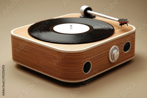 Fototapeta premium Wooden Turntable with Black Vinyl Record and Silver Tonearm