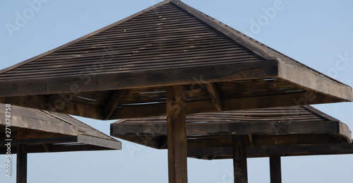 Obraz premium Wooden umbrellas on the beach.