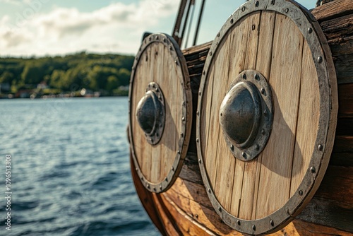 © Velar, Naklejka premium Wooden Viking snekkja longship, detailed view, Finland.