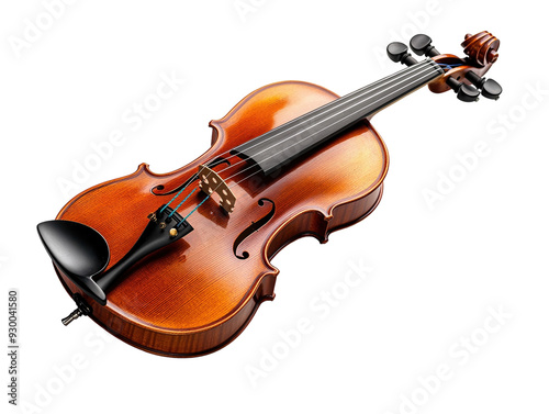 © Asier, Fototapeta premium Wooden violin with bow isolated on white background.. PNG transparent.