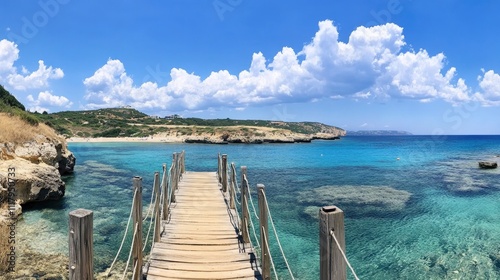 Obraz premium Wooden walkway leads to secluded beach paradise
