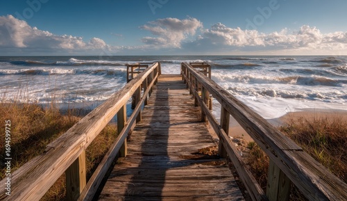 © Ihza, Obraz premium Wooden walkway over stormy ocean
