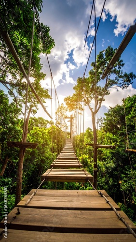 © Irmasumarsih, Obraz premium Wooden walkway through a jungle canopy