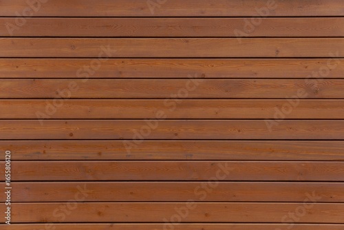 Obraz premium Wooden wall made of horizontal brown planks.