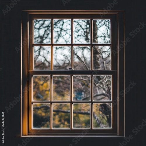 © abu, Naklejka premium Wooden window frame with a view