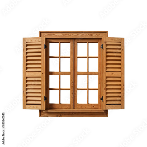 © AKIB, Obraz premium Wooden Window with Open Louvered Shutters