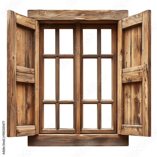 Obraz premium Wooden Window with Open Shutters Isolated on White and Transparent Background