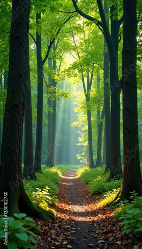 © Steve, Obraz premium Wooden wooden background with tree trunks and branches, nature, natural, forest