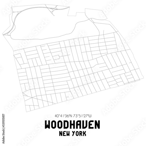 Fototapeta premium Woodhaven New York. US street map with black and white lines.