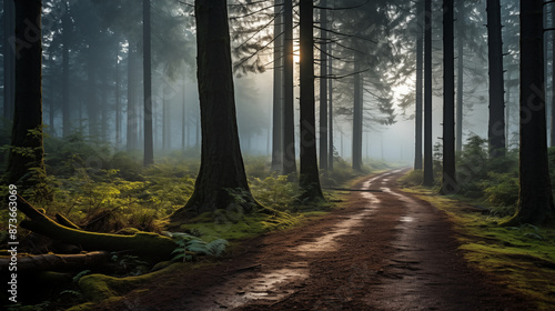 Obraz premium Woodland Magic: Ethereal Light Bathes a Winding Forest Trail