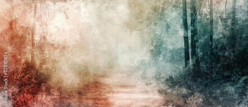 © Artem, Fototapeta premium Woodland path immersed in a tranquil watercolor landscape with vibrant colors