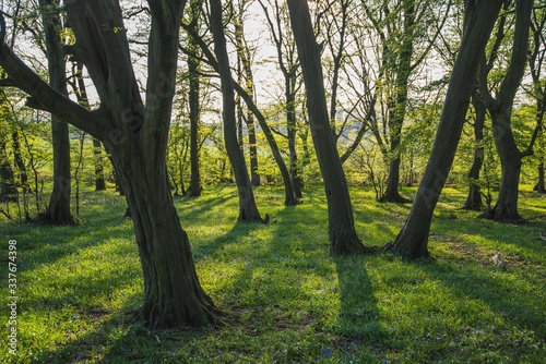 © Ian, Naklejka premium Woodland Sunset Forrest Scene Texture Background