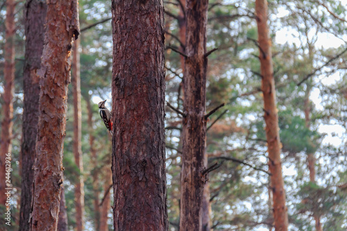 © kaa_bregel, Fototapeta premium Woodpecker inhabiting pine forest