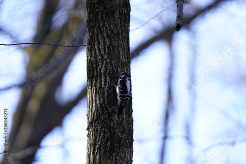 Fototapeta premium Woodpecker pecking away at a tress