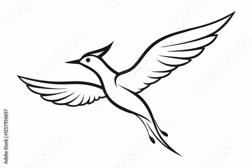 © Mr Graphics2.0, Fototapeta premium woodpecker silhouette vector illustration,cute woodpecker geometric line art symbol icon on white background.