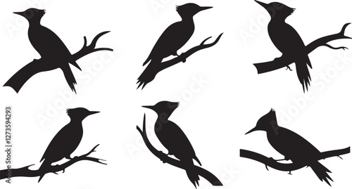 © stockingtimee, Obraz premium Woodpecker silhouettes