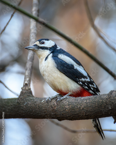 © Владимир Зубков, Obraz premium Woodpecker sitting on a tree branch close up in natural environment