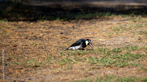 Obraz premium Woodpecker Standing in Sunlit Grass