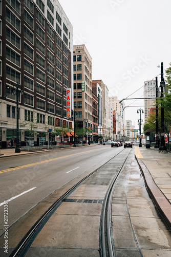 © jonbilous, Fototapeta premium Woodward Avenue w centrum Detroit w stanie Michigan