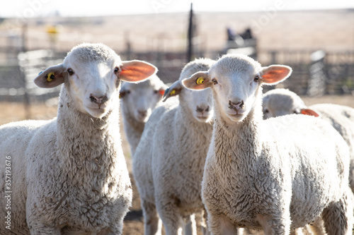 © Clint Austin, Obraz premium Woolled sheep in a pen