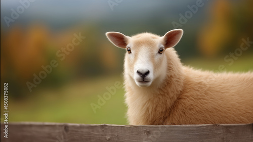 © AnyPic289, Obraz premium woolly sheep with soft fur in natural farm setting