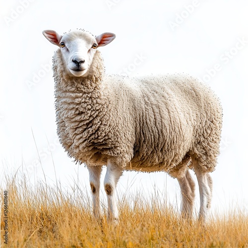 © NanaNoei, Obraz premium Wooly sheep standing amidst tall, luscious grass in a sun-drenched field