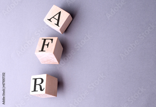 © Iryna, Obraz premium Word AFR on wooden block on the grey background