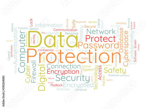 © Rana, Fototapeta premium Word cloud background concept for Data protection. Digital security, network technology encryption of cyber cloud safety. vector illustration.