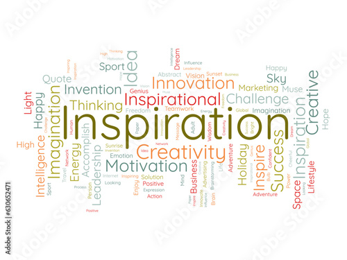 © Rana, Obraz premium Word cloud background concept for Inspiration. Creative innovation, intelligence imagination idea of business vision. vector illustration.