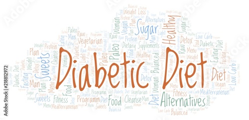 Obraz premium Word cloud with text Diabetic Diet on a white background.