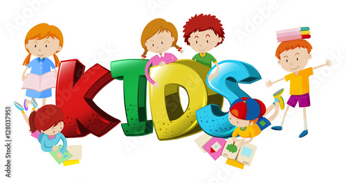 © blueringmedia, Obraz premium Word design with boys and girls in background