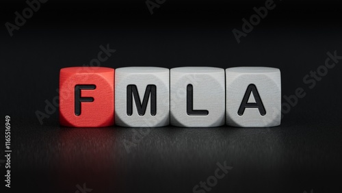 © feng, Obraz premium Word fmla on wooden cubes with copy space.close up of wooden elements,Business Concept.3D rendering on black background.