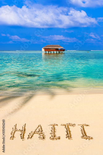 © Nikolai Sorokin, Fototapeta premium Word Haiti on beach